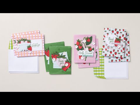 Craft sweet handmade cards featuring sun-kissed strawberries and breezy gingham.